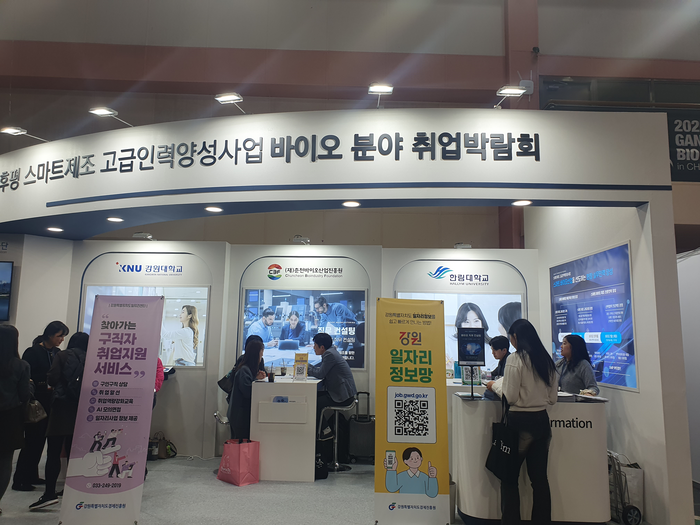 또한 강원일자리정보망 홈페이지에서 강원바이오엑스포 온라인 채용관을 운영하며 입사지원자와 구인 기업 간 현장 면접도 지원했다.