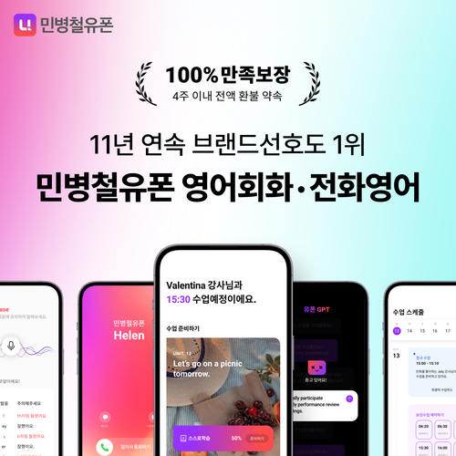 또한, 업계 유일 전원 TESOL 자격 보유 외국인 강사진이 참여하는 1:1 실시간 수업은 매 시간 수준별로 구성된 커리큘럼과 세밀한 피드백으로 높은 만족도를 기록하고 있다. 민병철유폰은 수업 10분 전까지 취소가 가능하고, 취소된 수업은 100% 보강할 수 있는 유연한 학습 환경을 제공해 수강생 편의성을 극대화했다.