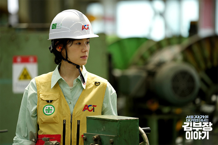 보석처럼 빛나는 역할만 맡아온 정은채가 변신을 시도했다. JTBC ‘서울 자가에 대기업 다니는 김 부장 이야기’(이하 ‘김 부장 이야기’)의 특별출연을 통해서다. 안전모를 푹 눌러쓰고, 싸구려 셔츠를 걸친 ACT 아산공장 작업 반장 이주영이 정은채의 역할이다. 미모는 사라지지 않았지만, 전에 본 적 없는 소시민의 얼굴이다. 그 안에 시대가 요구하는 리더의 모습이 담았다. 놀라운 성장이자, 커다란 확장이다.