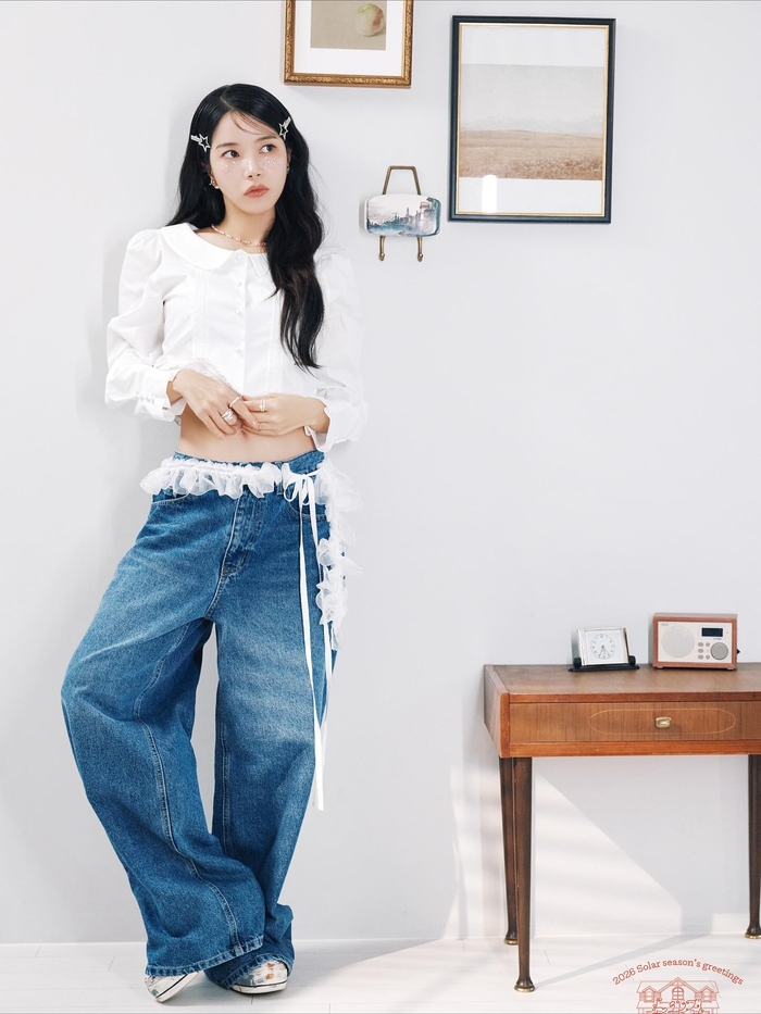 사진 속 솔라는 흰색 원피스 홈웨어로 청순한 분위기를 연출하는가 하면 와이드 데님 팬츠와 빨간 하트 카디건 등의 스타일링으로 발랄하고 키치한 매력을 동시에 선보였다. 팬케이크와 오렌지 등 소품을 활용하여 친근하면서도 사랑스러운 일상의 모습을 담아냈다.