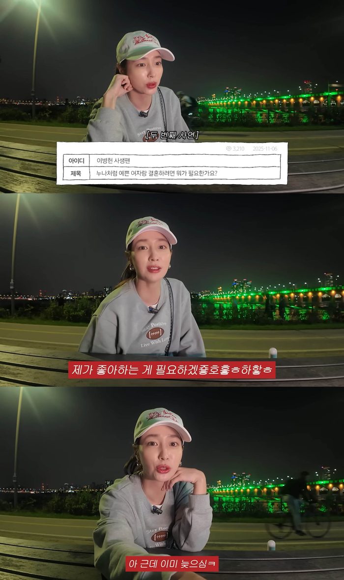 이민정은 진지하게 조건을 이야기한 후, 구독자를 향해 “죄송합니다. 저는 결혼했어요”라고 덧붙여 웃음을 자아냈다.