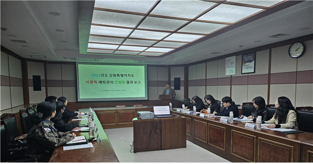 강원특별자치도(도지사 김진태)는 도내 군 급식시설의 식중독 발생을 사전에 예방하고 관리체계 강화 및 도(道)-군(軍) 간 협력 네트워크를 구축하기 위해 11월 11일 강원특별자치도 보건환경연구원 소회의실에서 「2025년 군부대 식중독 예방 컨설팅 보고회」를 개최했다고 밝혔다.