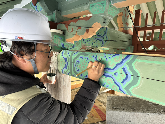이번 사업은 국가유산청 국립문화유산연구원(원장 임종덕)이 복원한 전통 녹색안료 ‘동록(銅綠)’을 사용했다. 이는 연구원이 민간 기업에 제조기술을 이전해 생산된 안료가 문화유산 보수정비 현장에 처음으로 적용된 사례로그 의미를 더하고 있다.