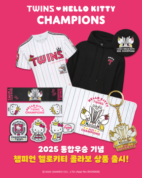 이번 기념상품은 12일 오후 3시부터 트윈스 어패럴샵을 통해 통합 우승 바시티 점퍼를 비롯해 스타디움 래더 점퍼, 반집업 바람막이, 후드티(3종), 티셔츠(2종), 유니폼(2종) 등을 출시하고, 챔피언 헬로키티 유니폼, 후드티 등 컬래버 상품은 콜랩샵에서 만날 수 있다.