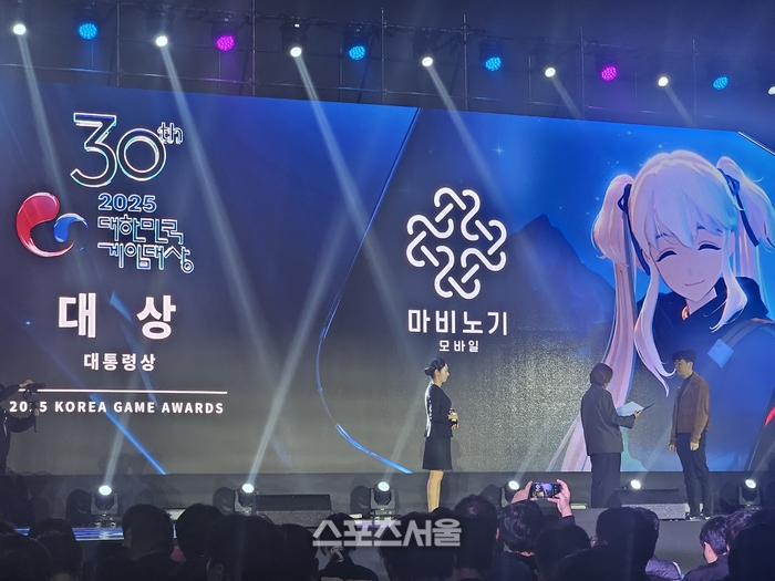 [스포츠서울 | 벡스코=강윤식 기자] 30회를 맞은 대한민국 게임대상. 의미 있는 날 가장 빛난 주인공은 데브캣의 ‘마비노기 모바일’이었다. 영예 대상을 수상했다.