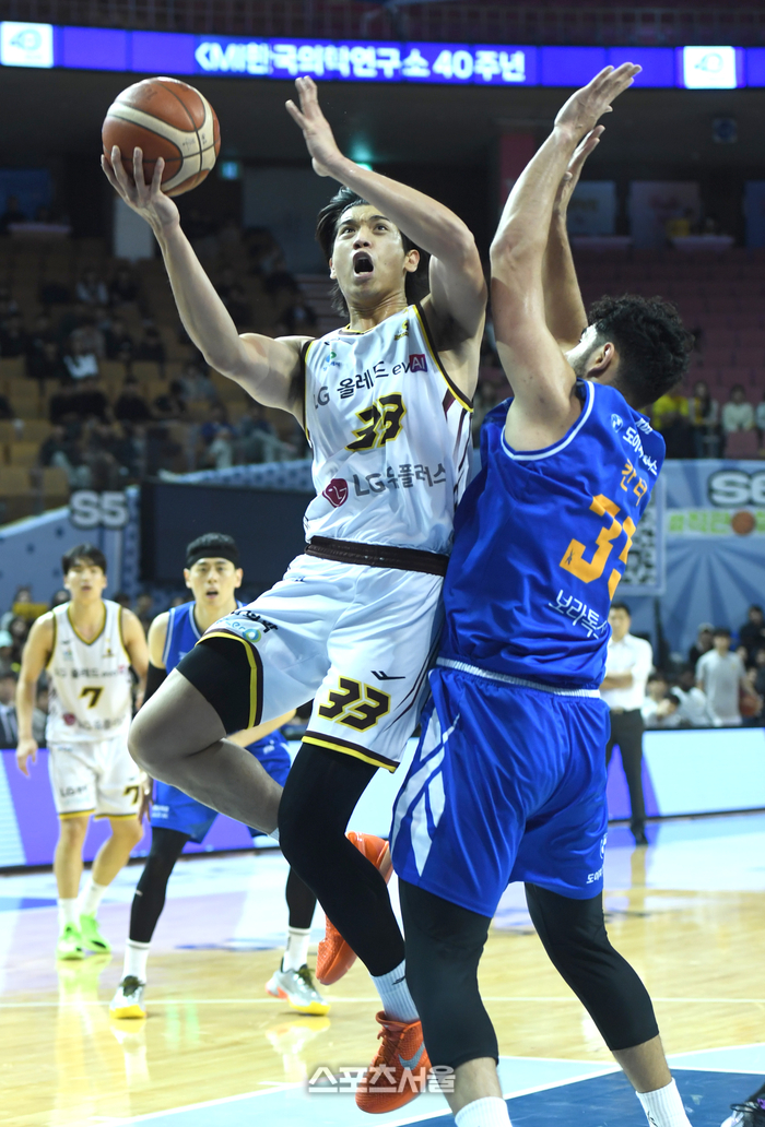 창원 LG 칼 타마요가 12일 서울 잠실실내체육관에서 열린 2025~2026 프로농구 서울 삼성과 경기에서 슛을 시도하고 있다.
