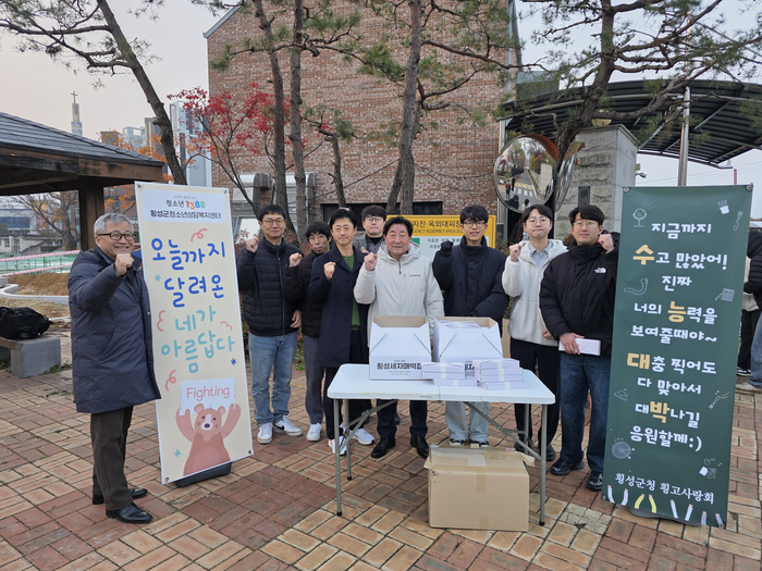 [스포츠서울ㅣ김기원기자]횡성군청소년상담복지센터(센터장 김홍석)는 11월 13일, 대학수학능력시험 수험생과 학부모를 대상으로 ‘오늘까지 달려온 네가 아름답다’수능 응원 캠페인을 진행했다.