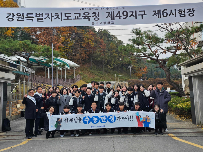 전국 | 강원 육동한 춘천시장, 봉의고 찾아 수험생 격려 입력2025-11-13 09:07:54 북마크 페이스북 트위터 SNS 더보기 가글자크기설정 인쇄 SNS 더보기 닫기 네이버밴드 네이버블로그 URL복사 글자크기 설정 메뉴 닫기 글자크기 설정 시 다른 기사의 본문도동일하게 적용됩니다. 가 가 가 가 가 [스포츠서울ㅣ춘천=김기원기자]육동한 춘천시장이 13일 2026학년도 대학수학능력시험일을 맞아 봉의고 정문에서 시험장에 들어가는 수험생들을 격려했다.acdcok4021@sportsseoul.com 기사추천 0