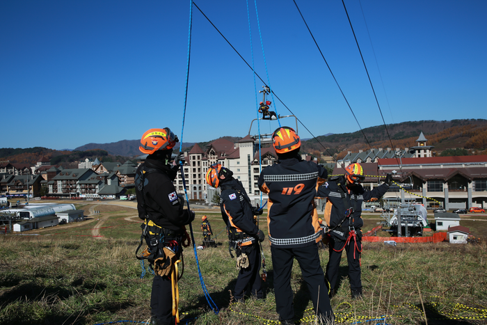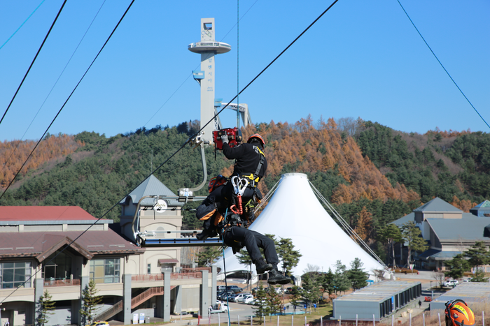 [스포츠서울ㅣ김기원기자]강원특별자치도 119환동해특수대응단(소방정 김문하)은 지난 12일(수) 평창군 알펜시아스키장에서 리프트 사고대응 특별구조훈련을 실시했다.