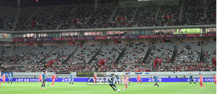 한국 축구는 파라과이전 관중 기록을 보며 한숨을 내쉬었다. 앞서 열린 브라질전에 6만 3237명이 입장한 것과 크게 비교됐다. 비니시우스 주니오르를 필두로 하는 슈퍼스타가 즐비한 브라질전은 흥행에 대성공했지만, 사실상 한국 선수들만 보고 오는 파라과이전은 흥행 참패를 당했다. 불과 며칠 사이 4만 명이 증발했으니 경기를 준비한 대한축구협회가 충격을 받아도 이상하지 않은 수치였다.