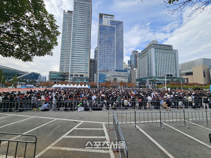 지스타 2025가 13일 부산 벡스코에서 출발했다. 본격적인 행사 입장 전. 현장을 찾은 관람객들은 입장 팔찌를 받기 위해 줄을 섰다. 오전 8시부터 이미 꽤 긴 줄이 늘어섰고, 일반 관람객 입장이 임박해서는 끝이 안 보이는 줄이 길게 이어졌다.