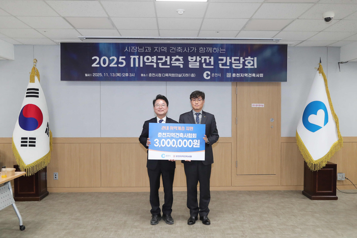 춘천시는 이날 시청 다목적회의실에서 ‘2025 지역건축 발전 간담회’를 개최했다. 이 자리에는 송성국 춘천지역건축사협회장 등 지역 건축사 40여 명이 참석했다.