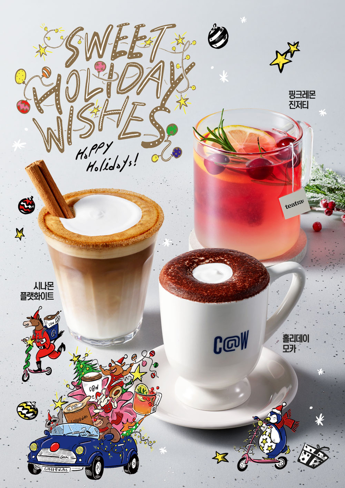 신제품 출시를 기념해 16일까지 프로모션을 진행한다. 홀리데이 시즌음료 3종 구매 시, 1천원 할인 혜택을 제공한다.