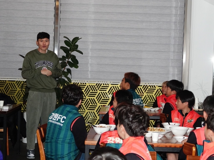 정경호 감독은 강릉을 찾은 산하 U-12 선수들에게 저녁까지 대접했다. 훈련을 마친 뒤 식당으로 모두 함께 이동해 대화를 나눴다. 오범석 코치, 장영훈 코치도 자리에 동행했다. 유소년 선수들은 그동안 궁금했던 질문을 쏟아냈고 지도자들은 아이들의 눈높이에서 친절히 응답했다.