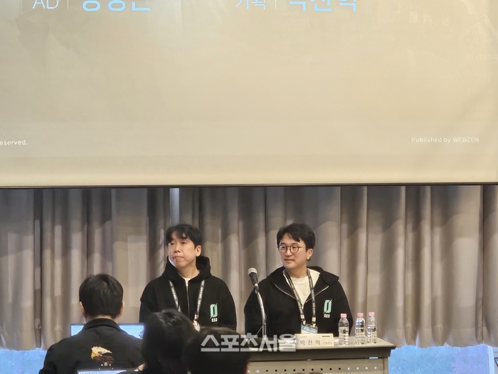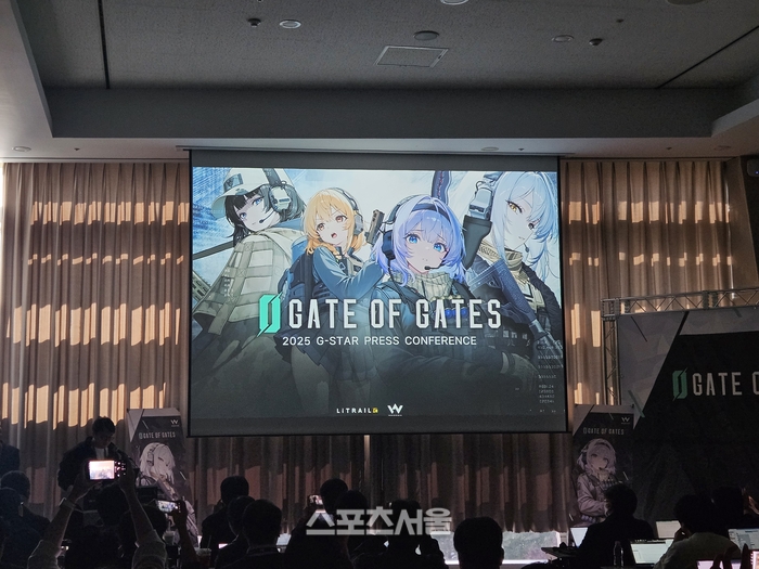 웹젠은 부산 벡스코에서 열리는 지스타 2025 현장에서 ‘게이트 오브 게이츠’ 시연을 진행했다. 뜨거운 이용자 반응이 이어졌다. 지스타가 한창인 14일 웹젠은 ‘게이트 오브 게이츠’ 공동 인터뷰를 진행했다. 이 자리에는 개발사인 리트레일의 박찬혁 기획팀장과 정명근 아트 디렉터가 함께했다.