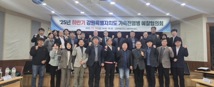 [스포츠서울ㅣ춘천=김기원기자]강원특별자치도(도지사 김진태) 동물위생시험소는 11월 14일(금) ‘2025년 하반기 강원특별자치도 가축전염병 예찰협의회’를 개최했다고 밝혔다.