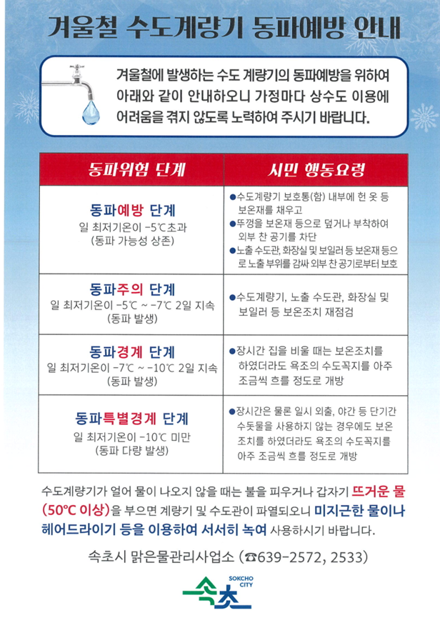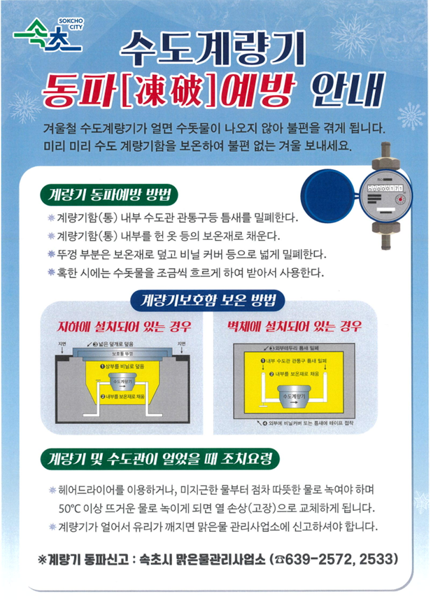 [스포츠서울ㅣ김기원기자]속초시가 겨울철 안정적인 수돗물 공급을 위해 수도계량기 동파 피해 예방 홍보에 나섰다.