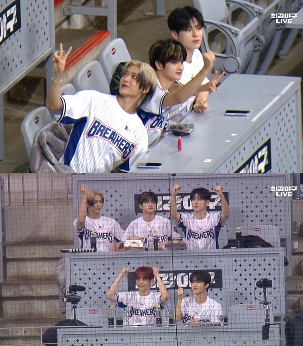 나우즈는 지난 16일 서울 고척 스카이돔에서 열린 JTBC ‘최강야구’ 두 번째 직관(직접 관람) 경기에 참석했다. 멤버들은 이날 브레이커스와 서울 야구 명문고 연합팀 경기의 시구자로 나선 같은 소속사 선배 가수인 아이들(i-dle) 미연을 열렬히 응원했다.
