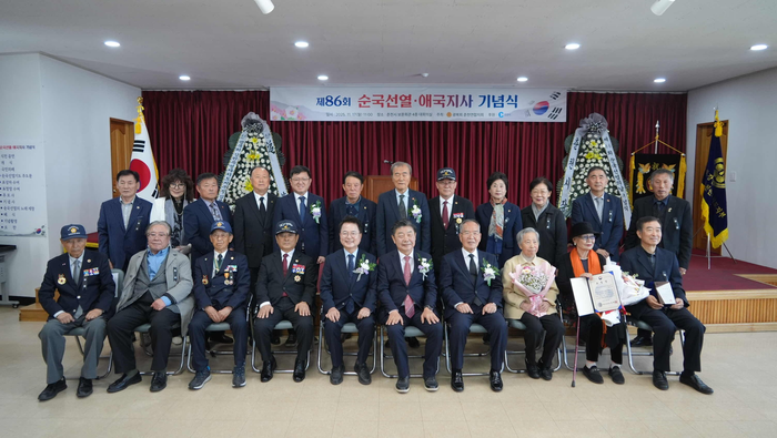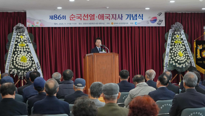 [스포츠서울ㅣ춘천=김기원기자]순국선열의 숭고한 희생을 기리는 제86회 순국선열의 날 기념식이 17일 춘천시보훈회관에서 열렸다. 광복회춘천연합지회(대표 이건찬) 주관으로 열린 이 행사에는 육동한 춘천시장을 비롯해 광복회원과 유관기관 관계자 등 100여 명이 참석했다.