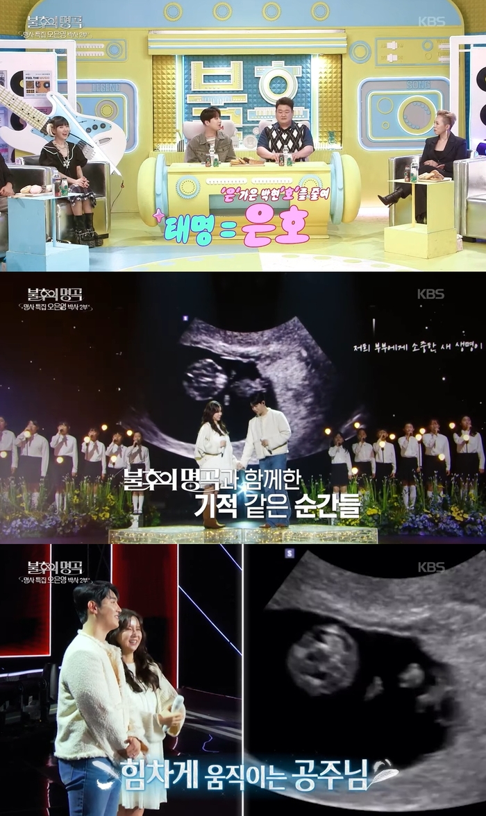 지난 15일 방송된 KBS2TV ‘불후의 명곡’에서는 은가은·박현호 부부가 임신 소식을 공식적으로 알리며 아이의 성별이 ‘딸’임을 공개했다.