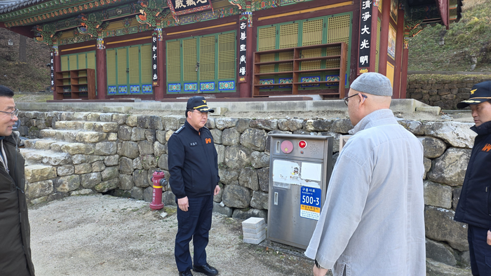 [스포츠서울ㅣ원주=김기원기자]김정기 강원특별자치도 원주소방서장은 18.(화) 오후 2시 관내 전통사찰인 구룡사를 방문해 12월 15일까지 지속되는 산불조심 기간에 산림화재 취약 요인 및 산림인접마을 비상소화장치를 확인하는 등 관계자를 만나 산불대응 컨설팅을 진행했다.