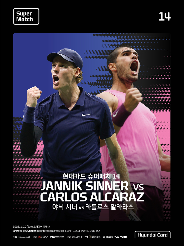현대카드는 18일 “이날 정오에 시작된 ‘현대카드 슈퍼매치 14 야닉 시너 VS 카를로스 알카라스’의 선예매 티켓이 10분 만에 전량 매진됐다”고 밝혔다. 이번 매치는 내년 1월 10일 인천 인스파이어리조트 아레나에서 열리는데 1만1000석 규모다.