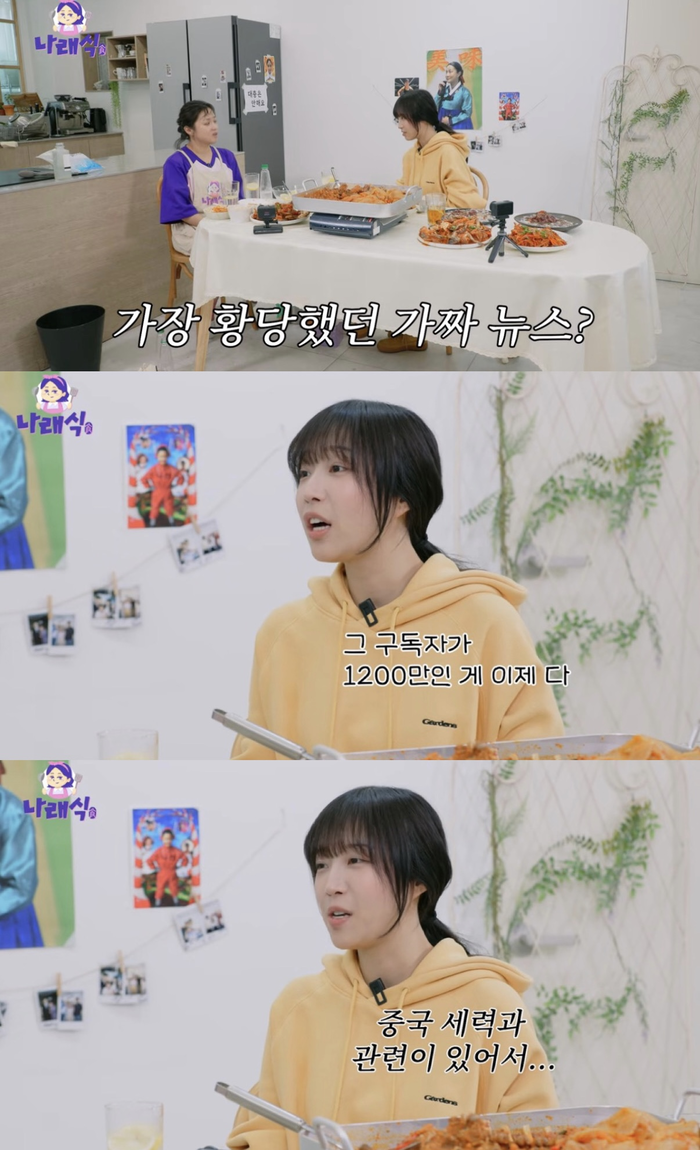 이날 박나래는 쯔양을 둘러싼 가짜뉴스에 관해 묻자, 쯔양은 “가장 황당했던 건 ‘중국 세력의 후원을 받아 구독자 1200만을 만들었다’는 루머”라고 전했다.