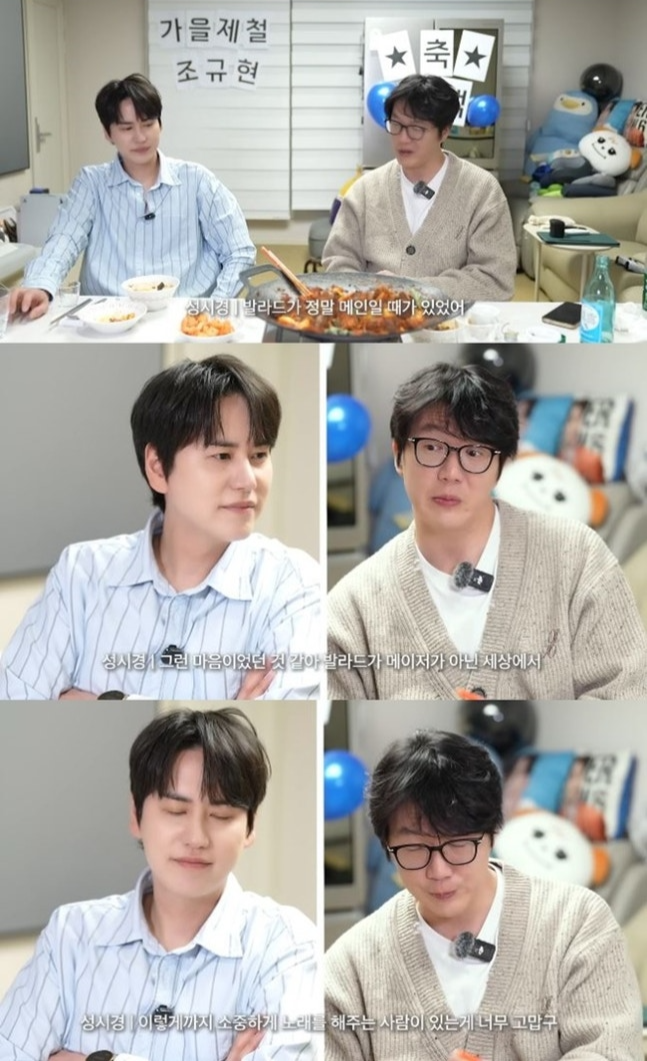 규현은 21일 자신의 채널 ‘규현 KYUHYUN’에 ‘성시경과 함께한 리스닝 파티’ 영상을 공개했다. ‘컴백 주인장’ 규현을 위해 제작진이 특별히 성시경을 MC로 초대했고, 성시경은 직접 순대와 국물을 준비하며 후배를 맞았다.