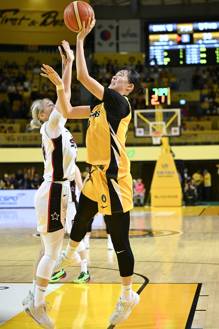 KB는 지난 22일 청주체육관에서 열린 2025~2026 BNK금융 여자프로농구 BNK 썸전을 64-55로 잡았다. 1라운드 최대 빅매치였다. ‘우승 후보’ KB와 ‘디펜딩 챔피언’ BNK의 맞대결이라는 상징성도 컸다. 두 팀 모두 개막전 승리로 출발했다. 흐름을 이어간 쪽이 단독 선두에 섰다. 무게 중심은 결국 KB 쪽으로 기울었다.