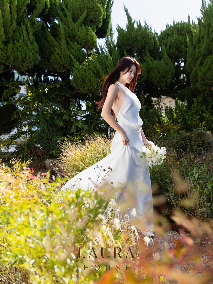 특히 야외 촬영에서는 등이 시원하게 드러나는 과감한 디자인의 홀터넥 드레스를 선택해 평소 ‘여신 치어리더’로 불리던 독보적인 아우라를 뽐내기도 했다.