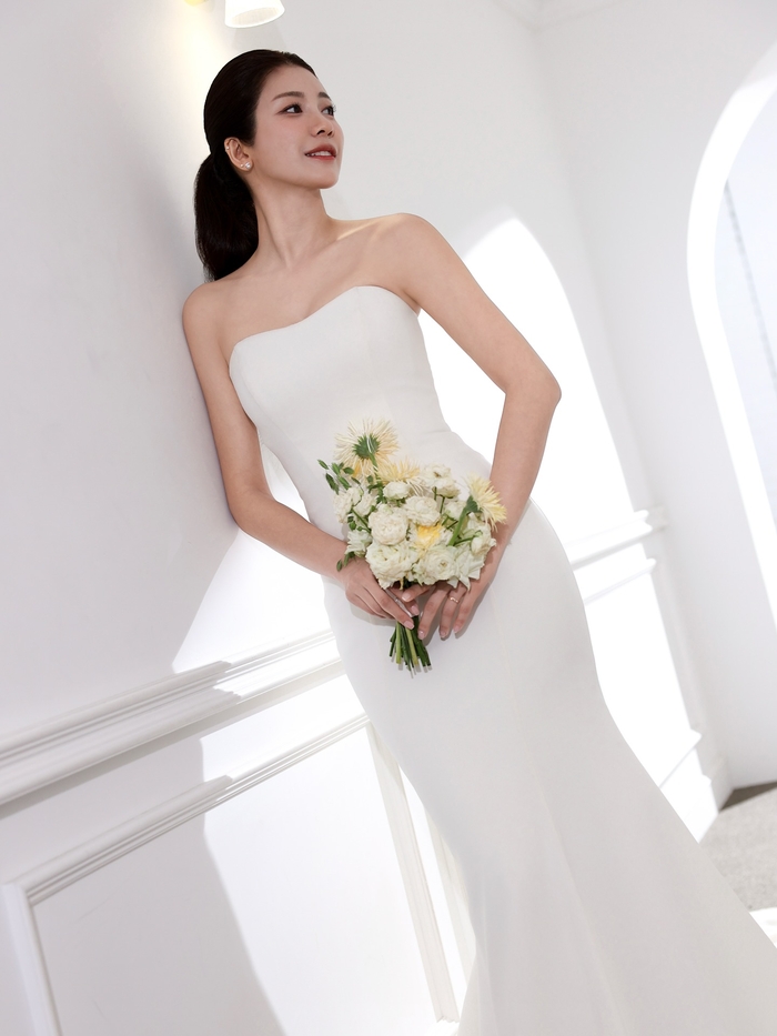 공개된 사진 속에서 김연정은 순백의 웨딩드레스를 입고 우아하면서도 사랑스러운 매력을 발산하고 있다.