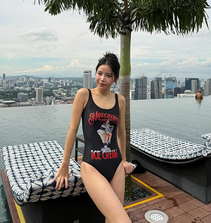 솔라는 22일 자신의 SNS에 “in Singapore”라는 글과 함께 여러 장의 근황 사진을 공개했다. 사진 속 솔라는 고층 인피니티풀을 배경으로 블랙 원피스 수영복을 착용한 채 여유로운 휴가를 만끽하고 있다.