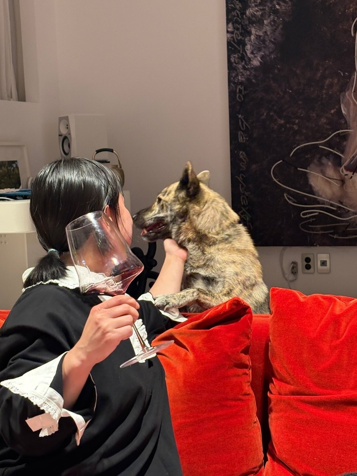 공개된 사진 속에는 박나래가 편안한 차림으로 복돌이와 함께 산책을 즐기는 다정한 모습과 실내에서 와인 잔을 들고 복돌이와 친밀한 스킨십을 나누는 모습이 담겨 있다.