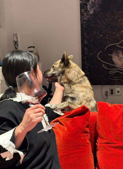 또 다른 사진 속엔 와인을 즐기던 박나래가 복돌이를 쓰다듬으며 넘치는 애정을 표하고 있다.