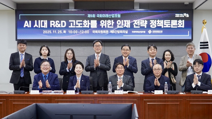 발제 이후 이준영 성균관대학교 교수가 좌장을 맡은 패널 토론에서는 황정아 더불어민주당 의원, 최수진 국민의힘 의원, 정의라 과학기술정보통신부 소프트웨어정책과 팀장, 김주연 교육부 인재양성정책과장, 우성훈 산업통상부 산업일자리혁신과장, 정혜연 LG AI연구원 Academy팀장, 박기범 과학기술정책연구원 선임연구위원, 유희수 국회미래연구원 연구위원이 참여해 AI 시대 국가경쟁력 강화를 위한 R&D 인재전략에 대해 활발한 토론이 이뤄졌다.