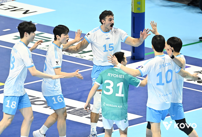 대한항공은 외국인 선수 러셀이 25득점에 공격 성공률 60.71%를 기록했다. 블로킹 5개의 서브 득점 3개를 더해 트리플 크라운도 달성했다. 정지석도 13득점을 보탰다.