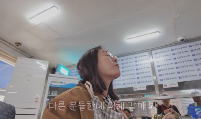 식당 내부는 손님들로 가득해 촬영이 쉽지 않은 상황이었지만, 그는 카메라 각도를 낮추며 주변을 최대한 비추지 않으려 노력한다.