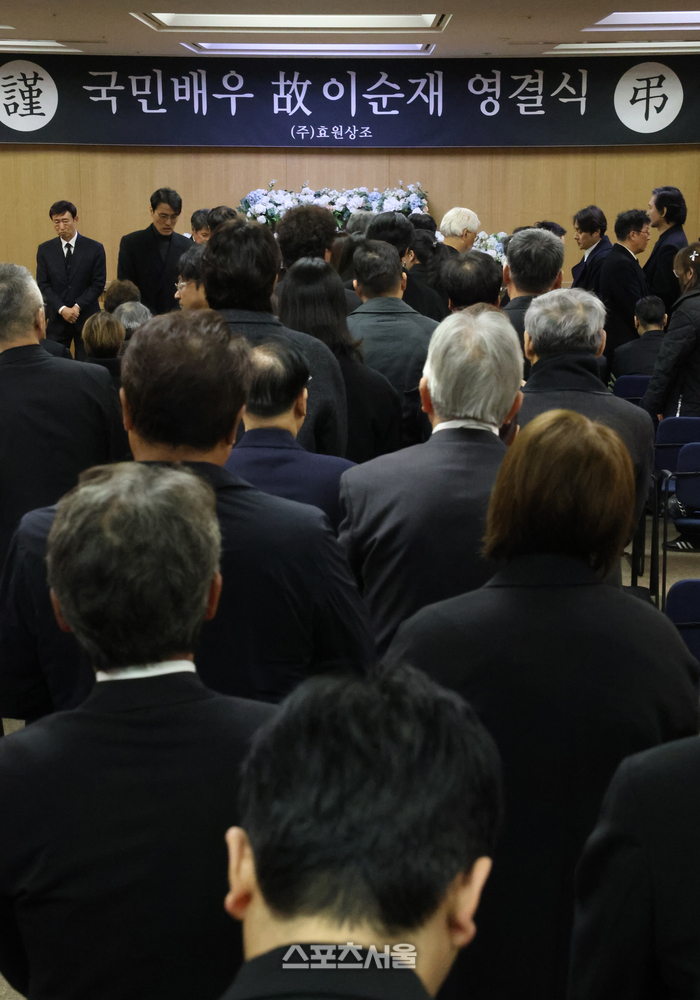 연예 | 연예가화제 [포토] 국민배우 고(故) 이순재 영결식 입력2025-11-27 07:51:00 북마크 페이스북 트위터 SNS 더보기 가글자크기설정 인쇄 SNS 더보기 닫기 네이버밴드 네이버블로그 URL복사 글자크기 설정 메뉴 닫기 글자크기 설정 시 다른 기사의 본문도동일하게 적용됩니다. 가 가 가 가 가 배우 고(故) 이순재의 영결식이 27일 서울 송파구 서울아산병원 장례식장에서 엄수됐다.2025. 11. 27.최승섭기자 thunder@sportsseoul.com 기사추천 0