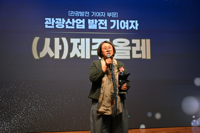 ‘관광발전 기여자’ 부문에서는 사단법인 제주올레가 다시 한번 국내 대표 관광코스로서의 위상을 증명했다. 안은주 대표는 “제주 곳곳을 걷는 길 하나가 지역경제에 실질적 파급효과를 가져왔다”며 “앞으로는 한국의 걷기 문화를 세계에 소개하는 데도 주력하겠다”고 소감을 밝혔다.