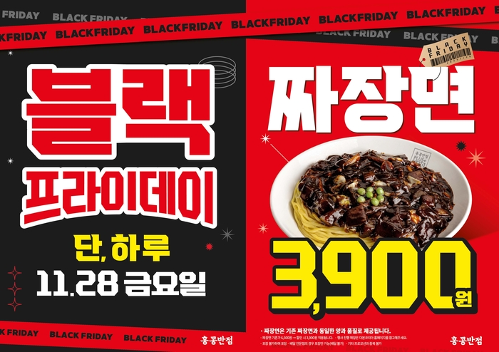 [스포츠서울 | 조선경 기자] 더본코리아(대표 백종원)의 중식 전문 브랜드 홍콩반점0410(이하 ‘홍콩반점’)이 블랙프라이데이를 맞아 오늘(28일) 하루 동안 짜장면을 3,900원에 제공하는 할인 프로모션을 진행한다고 밝혔다.