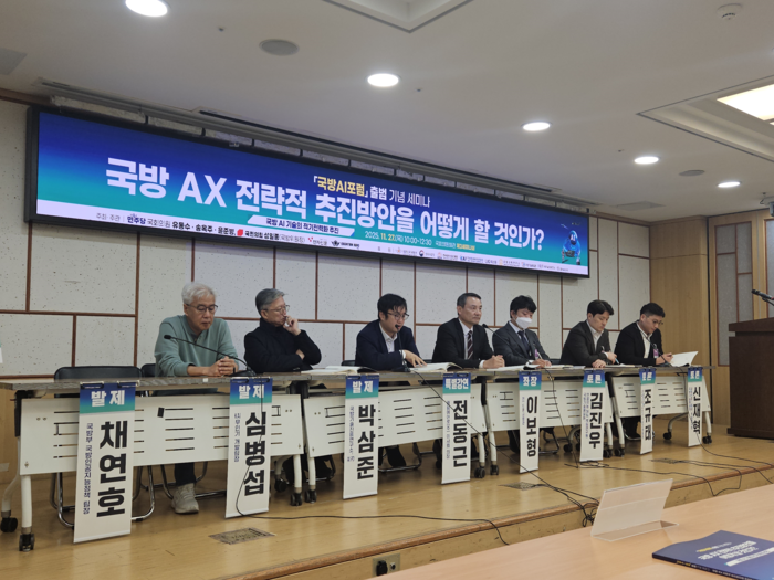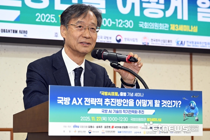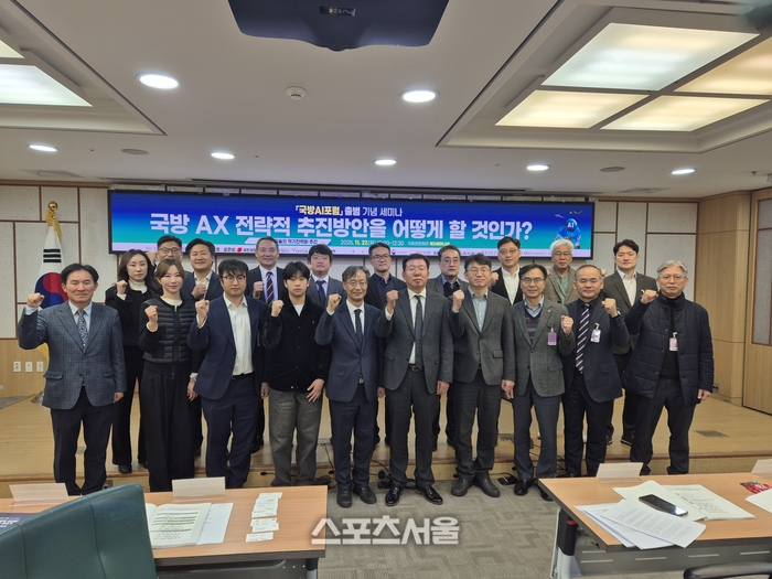 [스포츠서울 | 이상배 전문기자] 27일 오전 더불어민주당 유동수 의원은 의원회관 제3세미나실에서 ‘국방 AX 전략적 추진방안을 어떻게 할 것인가?’에 대한 세미나를 개최했다. 이번 세미나는 국방위원장 국민의힘 성일종 의원, 더불어민주당 송옥주 의원·윤준병 의원과 공동으로 개최하였으며, 전자신문의 ‘국방 AI 포럼 선언’을 겸하였고, 퀀텀에어로·KAI·LIG·한국방위산업진흥회·국방기술품질원·국방기술진흥연구소 등의 연구원들과도 함께하는 자리였다.