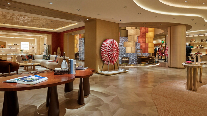 문화 체험 공간은 시게마츠 쇼헤이-OMA와 협업해 구성된 몰입형 전시로, 트렁크 메이커에서 글로벌 문화 하우스로 성장한 루이 비통의 역사를 주제별 방으로 풀어낸다.