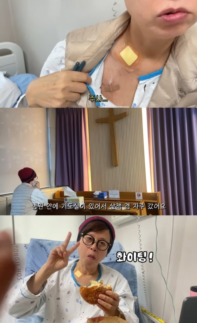 무엇보다 영상 곳곳에는 가족들의 든든한 존재가 함께한다. 딸은 병원과 집을 오가며 엄마 곁을 지키고, 남편 이봉원은 요리를 하고 사진을 찍으며 묵묵히 곁을 지켰다. 영상은 항암 치료 한가운데에서도 웃음과 일상을 놓지 않으려는 가족의 온기를 전한다.