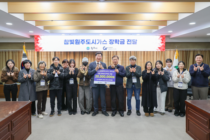 원강수 원주시장은 “지역의 밝은 미래를 책임질 인재를 양성하기 위해 밑거름이 될 장학금을 마련해 주신 참빛원주도시가스에 감사드린다”며 “장학금을 받은 학생들이 앞으로 지역 발전에 기여하는 인물이 되길 기대한다”라고 말했다.