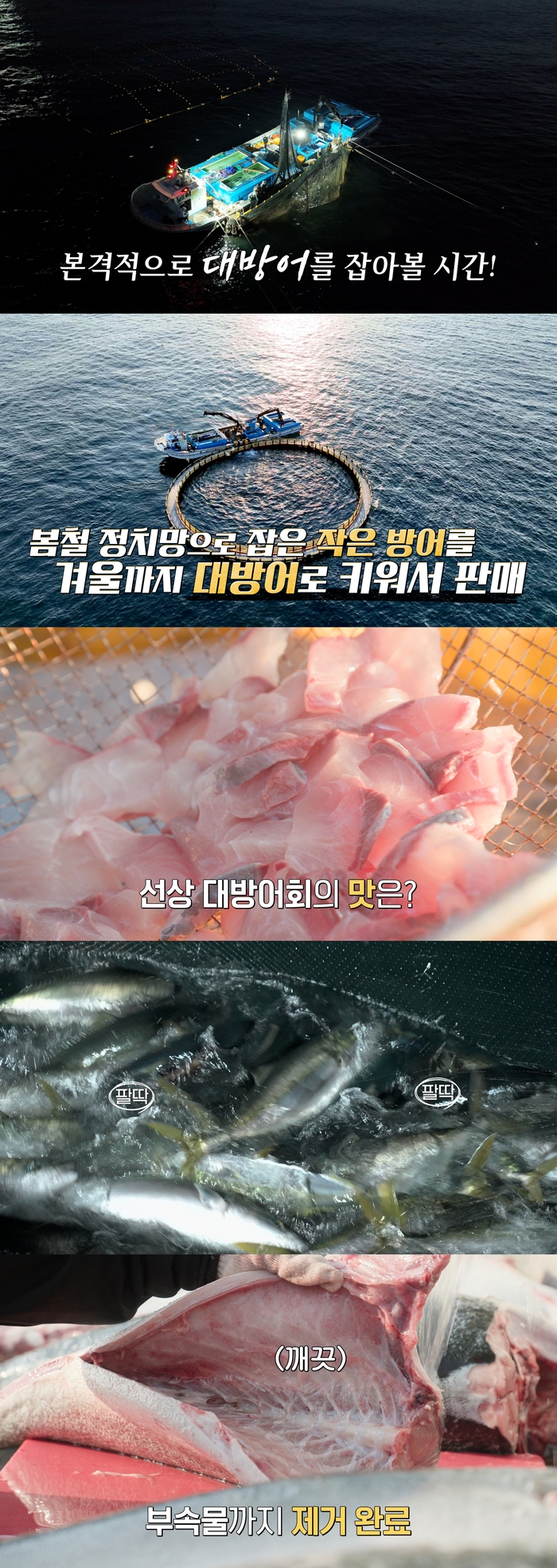 이렇게 잡은 대방어는 외옹치항에 자리한 베테랑의 야외 작업장에서 손질하고 숙성과 포장 과정을 거쳐 택배로 배달된다. 이 모든 과정을 함께 보고 배운 조연도 PD. 대를 이어 배를 타기로 결심하기 전까지 20년간 셰프로 활동한 김혁수 베테랑 셰프의 대방어 손질 실력과 숙성 노하우를 확인할 수 있다.