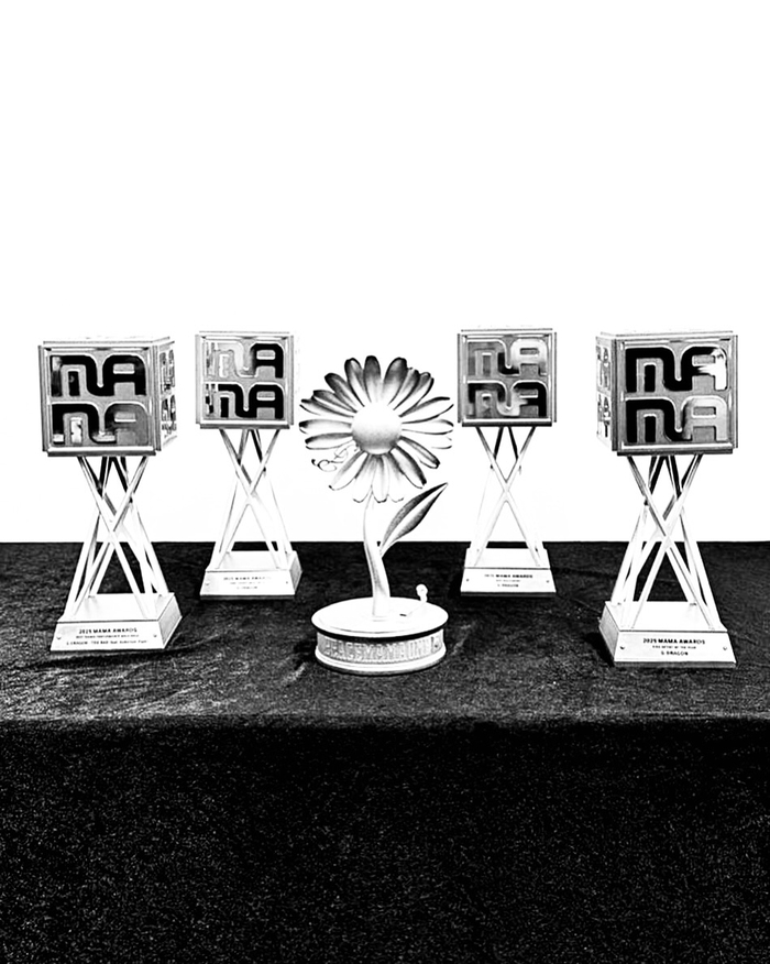 특히 눈길을 끄는 것은 테이블 위에 놓인 트로피들이다. 지드래곤은 이번 ‘2025 마마 어워즈’에서 대상을 포함해 총 4관왕의 영예를 안았다.