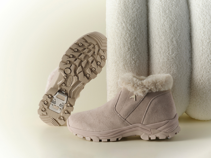 갑작스러운 첫눈이나 결빙 상황에 대비하기 위해 아이젠을 아웃솔에 일체형으로 설계한 아이젠 부츠 시리즈도 눈에 띈다. ‘스텔라’와 ‘프리미아’는 아이젠과 러버 아웃솔을 결합해 얼음길에서도 흔들림 없는 보행을 지원하며, 측면 지퍼를 더해 착·탈화의 편의성까지 높였다. 발수 스웨이드와 퍼보아 내피, 발수 립 소재 등 다양한 보온·방수 설계로 겨울철 외출에 최적화됐다.