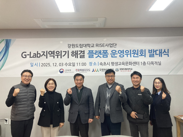 [스포츠서울ㅣ김기원기자]강원도립대학교 라이즈(RISE) 사업단 5-1과제팀은 12월 3일 오전 11시, ‘G-Lab 지역위기해결 플랫폼 운영위원회 발대식’을 개최하고 본격적인 운영 체제에 돌입했다고 밝혔다. 이번 발대식은 지역 현안 해결을 위한 지·산·학 협력 플랫폼이 공식적으로 출범했음을 의미한다.