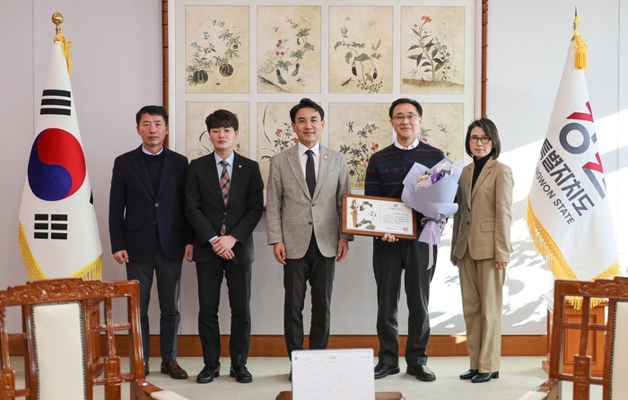 [스포츠서울ㅣ춘천=김기원기자]강원특별자치도(도지사 김진태)는 12월 3일(수) 도청 통상상담실에서 영화감독이자 한국예술종합학교 교수인 박종원 교수를 명예도민으로 선정하고 명예도민증서를 수여했다.