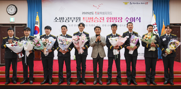 이번 특별승진은 소방청 주관 4개 분야(SAFE대상, 화재대응 분야, 우수 구조대원, 생명보호구급대상)와 도 주관 1개 분야(강원 최고소방관) 등 5개 분야에서 탁월한 성과를 거든 대원을 선발해 실시됐다.